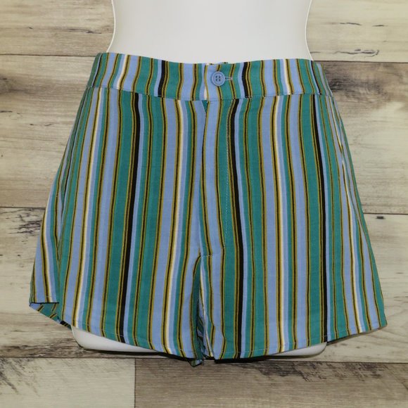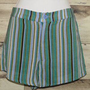 NWT~ Excellent Condition! Lining: 100% Rayon/Self: 100% Polyester. Multicolor: Green, Blue, Black, White, Gold Stripe Comfortable Shorts, Spare Button Attached.