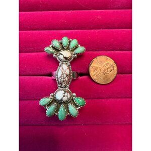 This enchanting piece of jewelry, crafted from sterling silver, features a captivating combination of wild horse stones and turquoise. Its adjustable nature ensures a fit for various sizes, making it a versatile addition to any collection. The intricate design and natural gemstones evoke a sense of timeless beauty and elegance.
