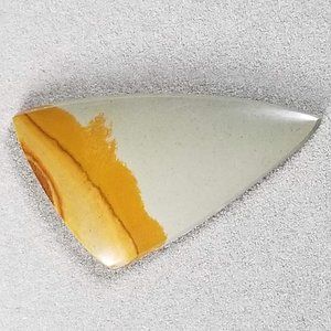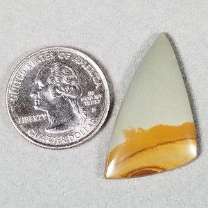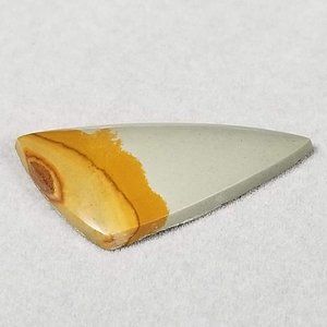 This is a beautiful Wild Horse Jasper Cabochon, made from old stock material. It has a nice finish on its very low dome front. It measures 36.89 x 20.56 x 4.00mm. Wild Horse Picture Jasper is a form of Jasper found in the Owyhee Mountains near the Idaho/Oregon border, it is characterized by its unique patterns created by petrified or silicate mud and occasional dendritic inclusions. Wild Horse picture jasper contains more grey than your typical picture jasper.
