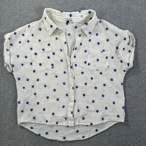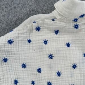 Wild Moss Embroidered Campshirt Women's Large Gauzy Blue Starburst Button Front