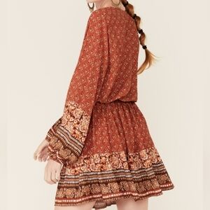 Wild Moss Women's Long Sleeve Boho Western Print Mini Dress Size Medium