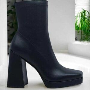 Propped on platform block heels, the square toe Beautee booties from Wild Pair accent your favorite looks with a stylish boost.