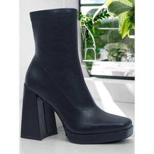 Wild Pair Beautee Womens Black Square Toe Block Heel Booties Size 6.5M NIB