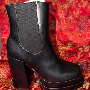 Sleek black ankle boots. Chunky heel design. Perfect for any occasion.
