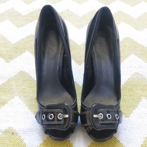 Wild Pair Black Patent Peep Toe Contrast Stitch Heels, Size 7.5 🔴CLEARANCE🔴