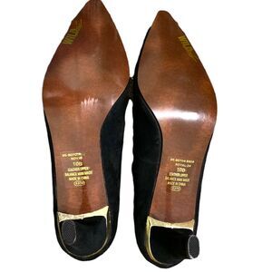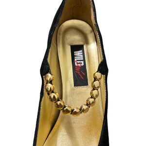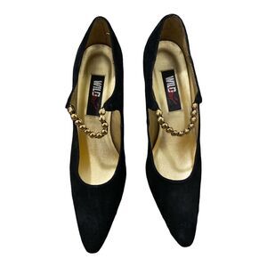 Wild Pair Black Suede Pointy Toe Pump Heels Gold Beaded Strap Size 10