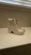 Sleek cream boots with chunky heel. Gold accents add flair. Perfect for stylish outings.