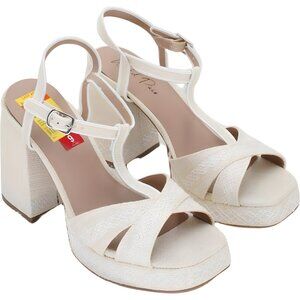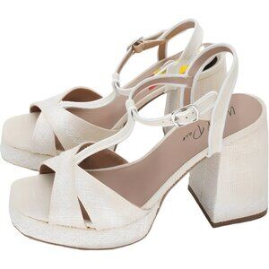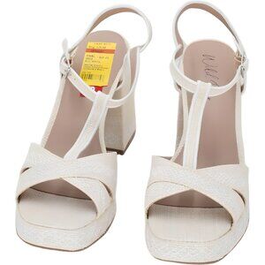 Wild Pair Harper Platform T-Strap Block Heel Sandals White Linen Women's US 9M