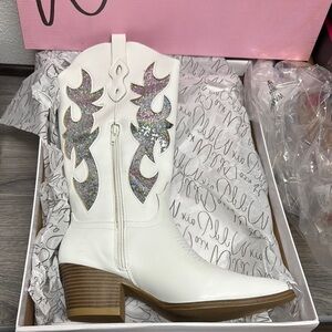 Step out in style with these stunning white glitter western boots. Perfect for adding a touch of sparkle to any outfit.
