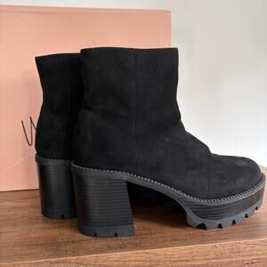 chunky heel boots, platform ankle boots, faux suede boots, black lug sole boots, minimalist boots, edgy footwear, street style, elevated basics, 90s revival, Y2K grunge, soft goth, alt girl aesthetic, model-off-duty style, fall fashion staple, winter-ready boots, sleek silhouette, statement sole, neutral wardrobe essential, monochrome outfit builder, closet hero, transitional season footwear, cool weather layering, fashion-forward comfort, bold tread boots, utility chic, modern edge, quiet luxury with attitude.