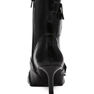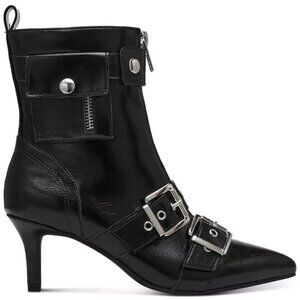 Wild Pair Moonbeam Buckle Booties Black Crinkle 9M Stiletto Heel MSRP $89