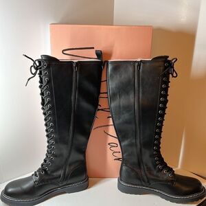 Wild Pair Ryleep Lace Up Tall Lug Sole Combat Boots- Black - Size 6.5 M- NIB