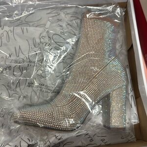 Wild Pair Womens Baybe Rhinestone Block Heel Ankle Boots