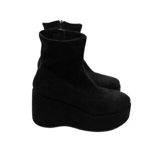 Wild Pair Womens Black 2 Platform Padded Earlee Round Toe Wedge Heeled Boots