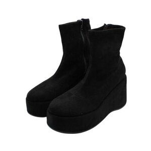 Wild Pair Womens Black 2 Platform Padded Earlee Round Toe Wedge Zip-up Heeled Boots
