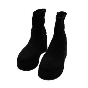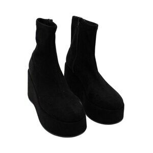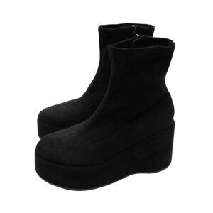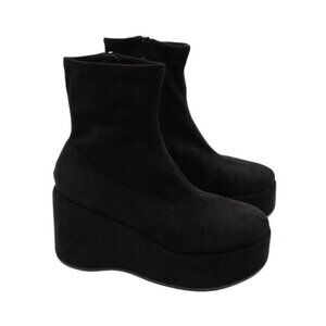 Wild Pair Womens Black 2 Platform Padded Earlee Round Toe Wedge Zip-up Heeled Bo