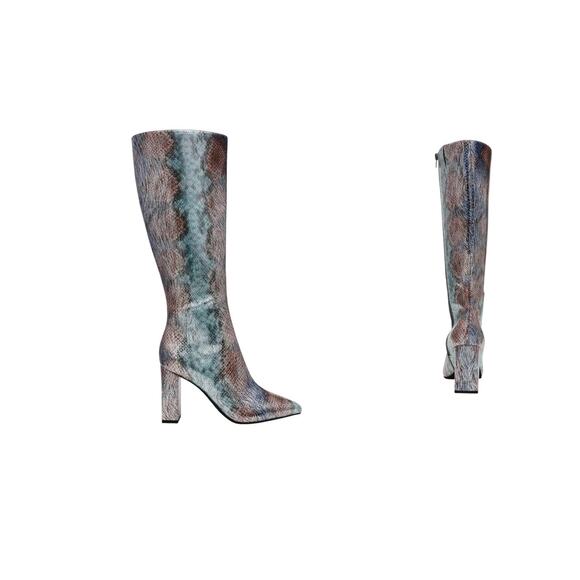 Wild Pair Women's Wide Calf Block Heel Knee High Boots Snake Size 7.5