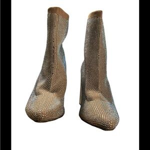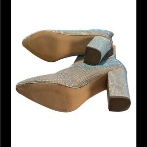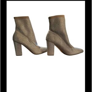 Wild Pair champagne color glitter boot with 4" chunky block heel in good condition Measured size looks to be 9.5.