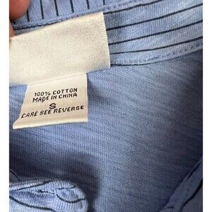 Wild Palms Button Oversize Slub-Knit Shirt Top Size S NWOT Blue Striped 3/4-Slv