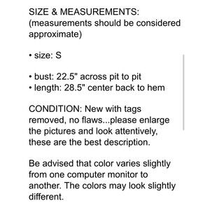 CONDITION: New with tags removed, no flaws...please enlarge the pictures and look attentively, these are the best description.