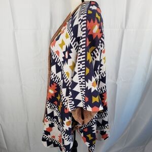 Wild Pearl Aztec Design Open Front Cardigan Lagen Look Blue & Orange Knit Sz M.