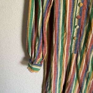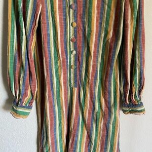 Wild Pony Spanish Brand Rainbow Striped Long Sleeve Shirt Festive Boho Hippie Dress Size L
