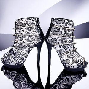 Features: Eye catching boots, a little taller than ankle height, the straps across the boots are double rows of rhinestones.