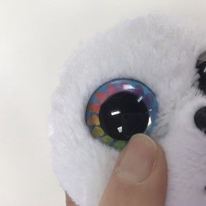 Wild Republic White Seal with Rainbow Hearts in Big Eyes Stuffed Animal Plush. Measures about 6 inches tall. We are the original owners. This item is in virtually unused condition. No rips, tears, stains, or funny smells. The hang tag was removed. It has its tush tag. Slight scratch on one eye (see photo with my finger).