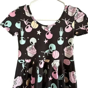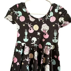 Wild Rich Kids Twirl Dress Girls size 11/12 Alien Cupcake print black