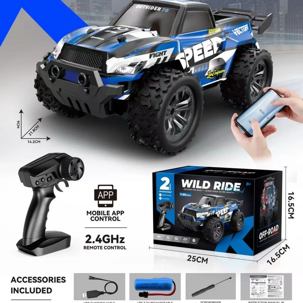 Experience thrilling adventures with the Wild Ride Blue Remote Control Car. Featuring a sleek blue design, this toy offers 2.4GHz remote control for seamless operation. Perfect for young racing enthusiasts.
