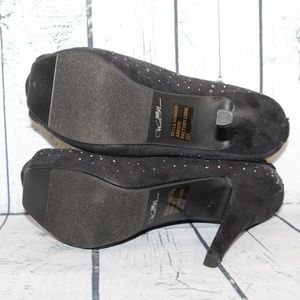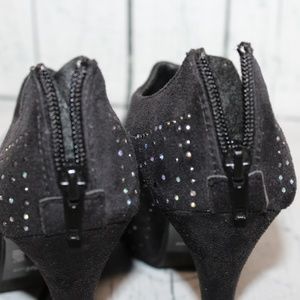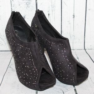 Wild Rose Sz 5.5 Black Bejeweled Open Toe Ankle Booties Zipper Back High Heels