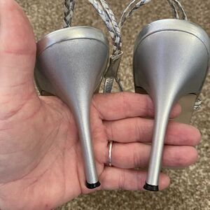 Beautiful Shoes have 4" heels, Elastic heel strap and a rhinestone button.