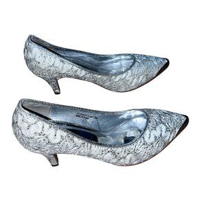 Wild Rose Pointed Toe Silver Lace Kitten Heel Pumps Size 8.5 Womens Closed Toe S