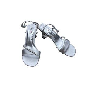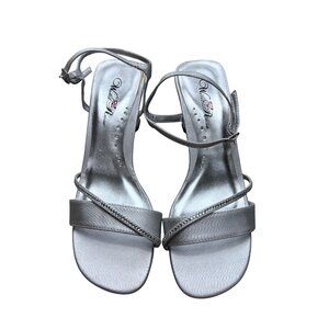 Wild Rose Womens Silver Strappy Heeled Sandals Size 9 Adela 104 With Rhinestone