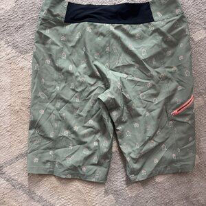 Never worn mountain bike shorts. Size 10, very stretchy with a zip side pocket. The back has a nice stretchy addition for the waist.