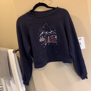 Wild Soul Cropped Navy Fleece Pullover Crewneck Sweatshirt Medium Montana Grap