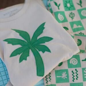 Artistic and adorable top with a large palm tree appliqué finished off with hand-embroidered details.