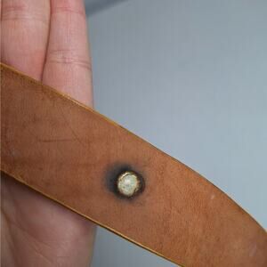 Some tarnishing/scratches to metal areas, some sticker residue from a price tag; leather in great condition