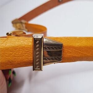 Wild West Belts Ostrich Leather Lion Greek Key Meander Yellow Gold Western 38 USA Made Leo