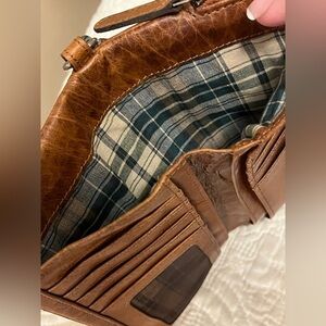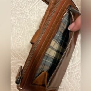 Chic brown leather wristlet by Wild West. Features a convenient strap and secure zipper.