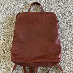 Wild West Los Angeles Leather Backpack Adjustable Straps & Plaid Interior Brown