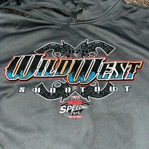 All late model fans! Here’s a Vado speedweeks Wild West shootout sweatshirt. Sports tek brand. Size XL. Drifit type material. Never worn, no tags.
