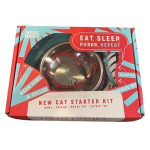 Wild & Woofy Eat Sleep Purr Repeat New Cat Starter Kit 4-Piece New.