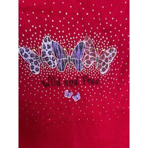 Wild and Free Red Baby Doll Cropped Fitted Short Sleeve Butterfly Sweater