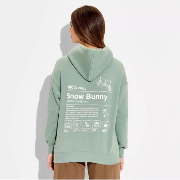 Wild fable Sage Green 'Snow Bunny' Graphic Hoodie NWT