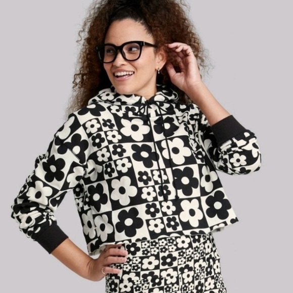 Wild fable cropped hoodie black & white flowers nwt