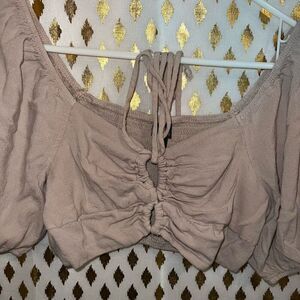 Wild fable smocked puffy peasant sleeve nude strappy crop top size M
