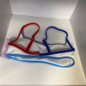 Wild fable, xxsmall, white bikini top red blue contrast adjustable straps NEW