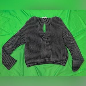 Embrace the cozy charm of this Wildfox sweater, featuring a stylish wrap-style V-neckline in a chic gray hue. The chunky ribbed knit pattern and relaxed fit make it a perfect choice for a comfortable yet fashionable look. Ideal for cooler days, this sweater combines warmth with a touch of elegance.