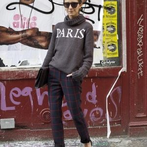 Rare Paris sweater, turtleneck. Color I'm pretty sure is gray but appears to maybe have a slight hint of purple. Bust across 18", length 26.5". Is a medium Knit but still warm. Acrylic and nylon with 10% wool.